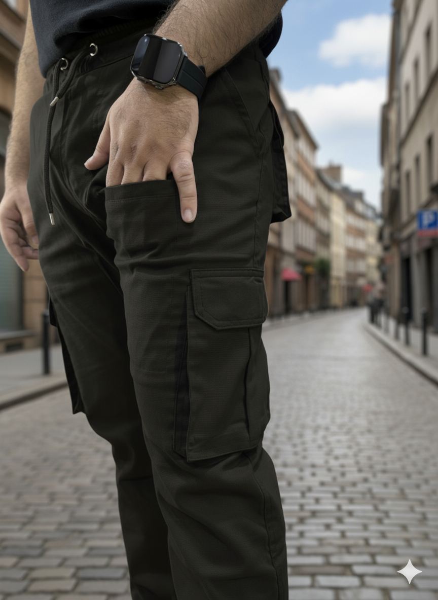 Material : Soft Cotton Stretch Waist :Elastic Waist Cargo Look : Slim Fit Pocket 8 (Mobile Pocket)