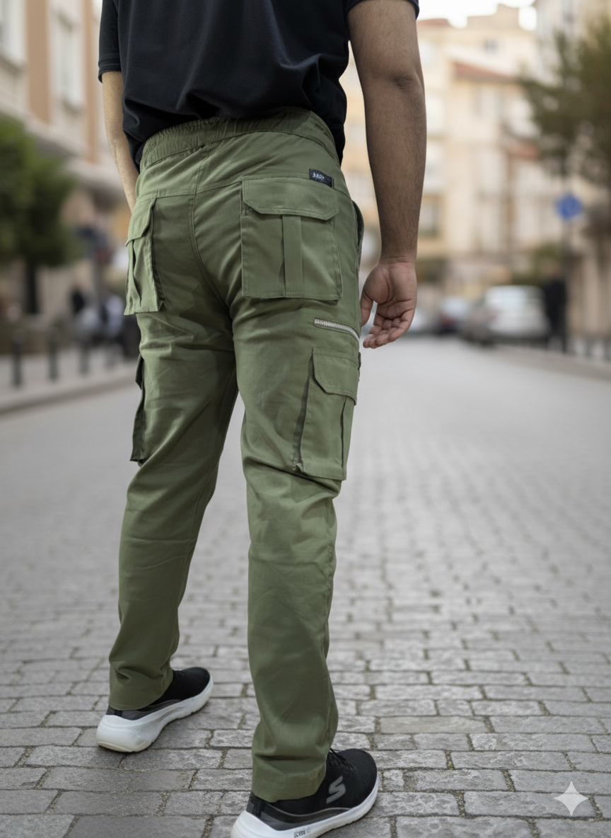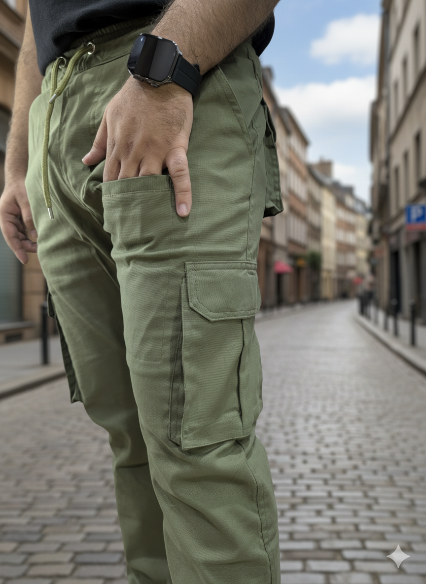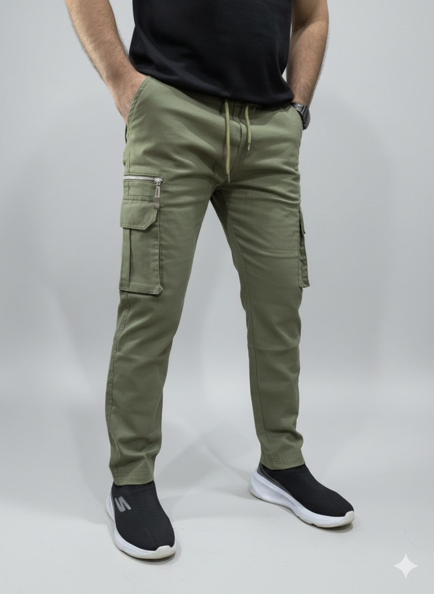 Material : Soft Cotton Stretch Waist :Elastic Waist Cargo Look : Slim Fit Pocket 8 (Mobile Pocket)